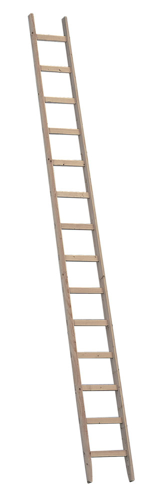 Die klassische, robuste Holzanlegeleiter für viele Einsatzgebiete, z. B. für den rauen Einsatz auf der Baustelle. Holme und Sprossen aus feinjährigem Fichtenholz.